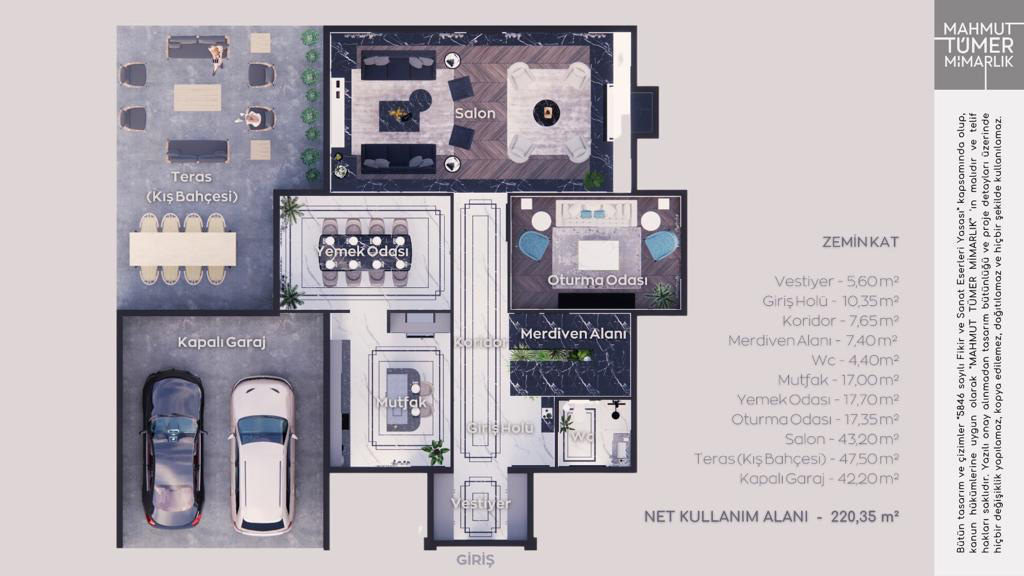 2025 Antalya Serik Belek Mahallesi; 56 adet her biri 2600 m2 Arazi üzerine kurulacak net 385 m2 Villa Yapım İşi